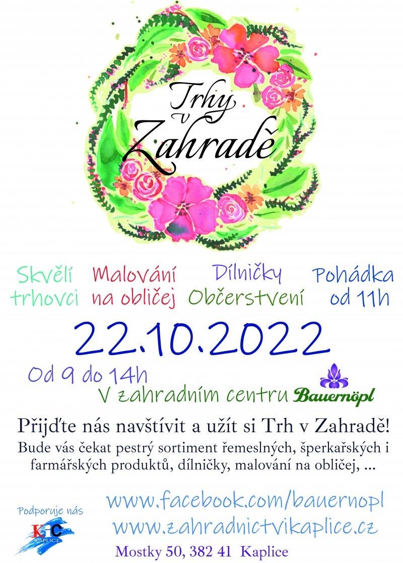 A je to tady! DALŠÍ TRH V ZAHRADĚ! Těšíte se? My mooc! Čeká Vás spousta nádherných stánků, od šperkařů, řemeslníků až po skvělé dobroty. Budou na Vás a Vaše děti čekat dílničky, malování na obličej a samozřejmě nebude chybět pohádka od 11h.